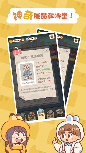 一起来开博物馆该游戏很有创意,不仅可以经营一家博物馆,还可以见识到很多没见过的古董之类的,可以丰富用户的阅历,还能体验到一步步壮大的快感。