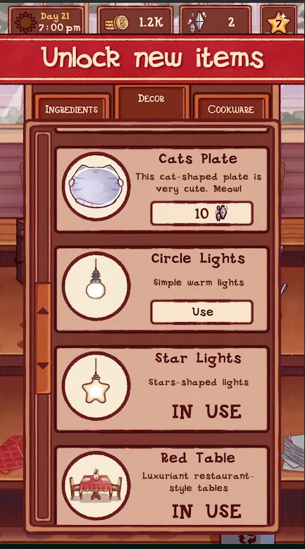 用户必须是游戏中餐厅的厨师,你想要管理好餐厅,根据不同顾客的不同需求,赢得很多金币。