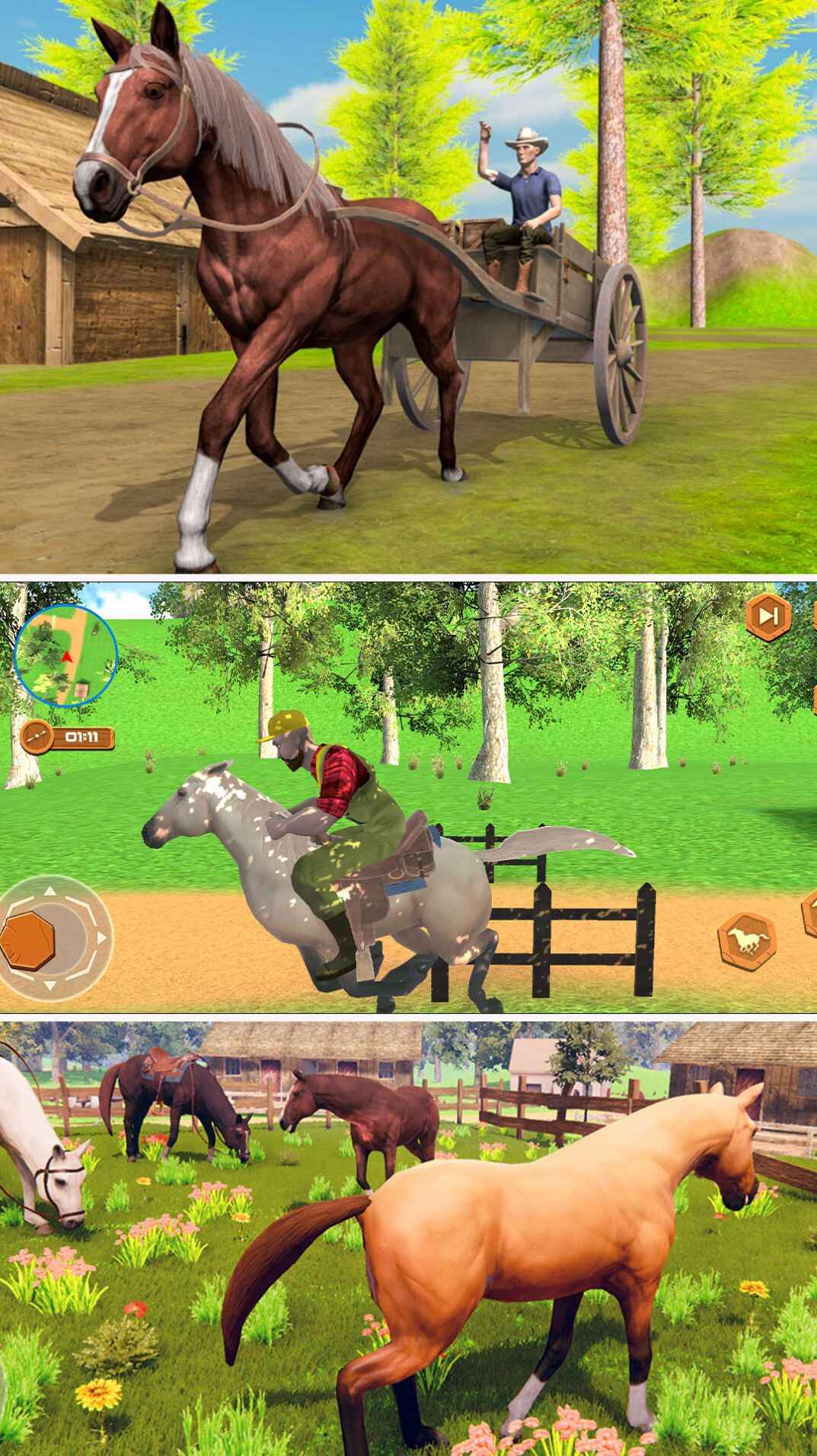 2,在游戏中,你可以进入比赛场展开激烈的赛马比赛,通过高超的马术技巧超越对手。游戏画面逼真,操作简单,游戏玩法内容丰富有趣。