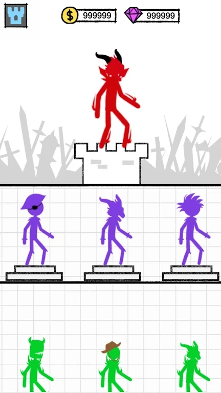 1.在游戏里有很多的火柴人用户,可以利用这些火柴人和怪兽展开激烈的挑战。