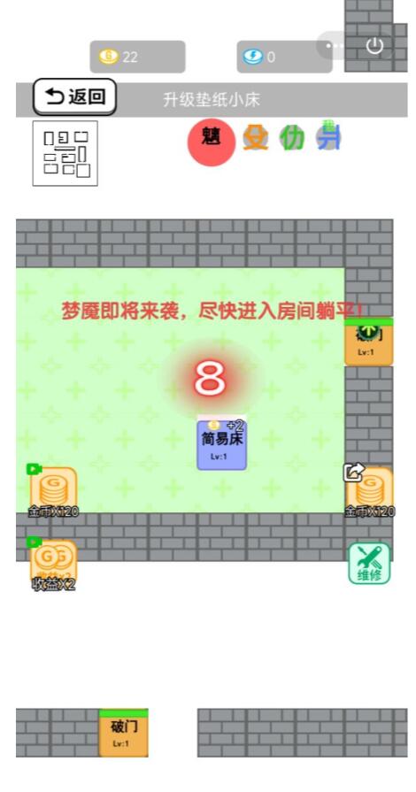 3、不断的升级房间的建筑物,利用一些武器来守护你的房间。