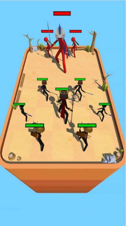 1、简单大方的操作界面,灵活的移动不同的火柴人,升级角色战斗力;