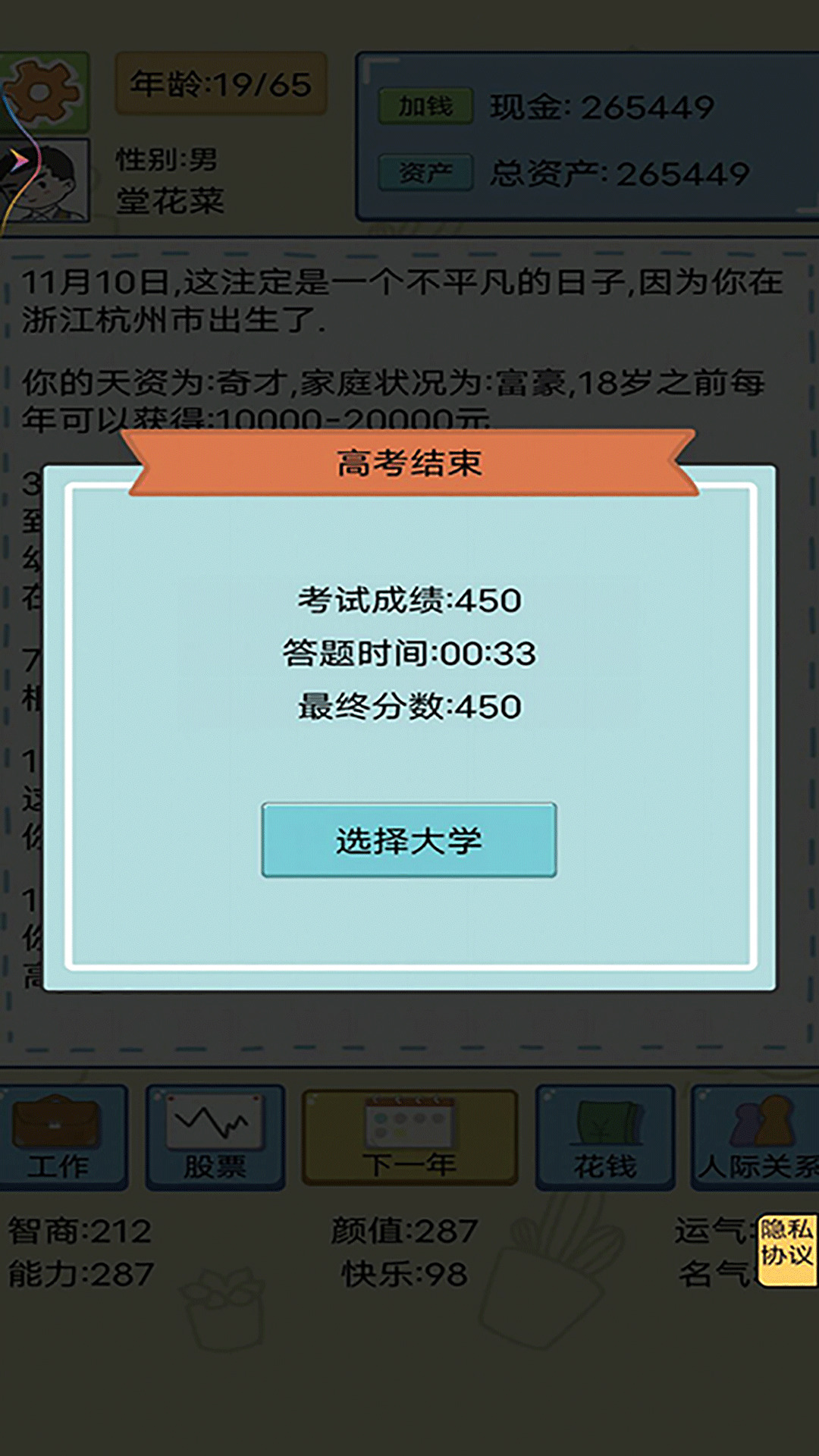 开局选择好一个最佳的属性,这样就能经历超棒的人生,家庭可是超级好的,每天都能过生富足的生活。