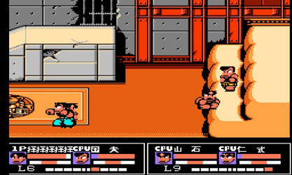 4.A拳B脚,A+B跳跃,方向键同方向按2次为跑,跳中A/B为跳攻击,跑动中A/B为冲拳脚.打到敌人喘气,然后近敌按方向键+A为投掷摔技,+B为抓住推走.敌人倒地站在他身上按上可以骑上按A可以攻击,按B跳起攻击,敌人倒地站在他身上按A/B为举起,举起后按A原地扔B远处扔,对方攻击时按A,B可防御.