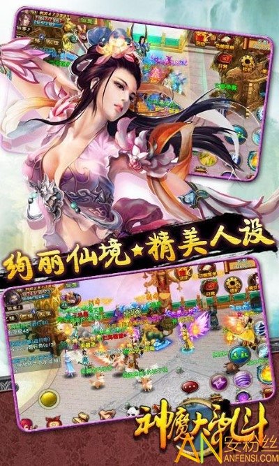 神魔大乱斗是一个拥有仙侠气质的战斗游戏。游戏过程中都能欣赏到美轮美奂的神界仙境.宠物.无论是随身小巧的手机还是震撼爽快的大平板,真正体现战斗的乐趣,触动手指去操纵有趣的战斗,美女,极富挑战的战斗玩法,装备.仙园,样样都充满神奇。
