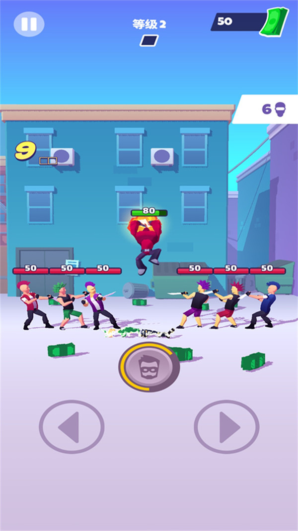 轻击一下变成最赞的超级英雄,多种类型的匪徒对手,专业技能升级来促使您的一键式格斗类游戏。