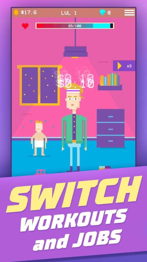 3.通过加强GymGuy在人体部位,你将能够升级和解锁新的训练和工作。