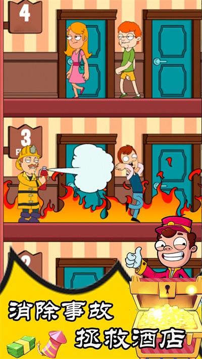 1、以繁华的酒店作为主要场景,设计了各式各样的有趣的关卡。
