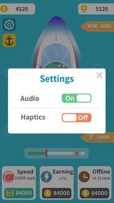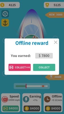 3.在航行的过程中也会遇到很多的宝盒和金币,你可以一一的去获取他们,补充自己的物资,提高游艇的等级。