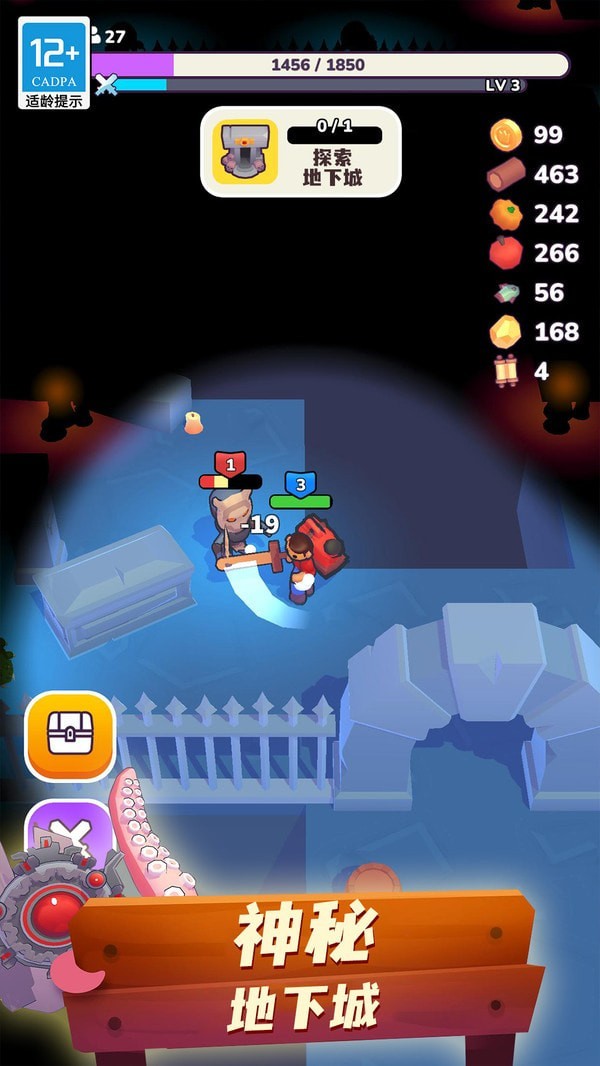 一触即发的危险!没有战斗怎么能算冒险呢?无畏的勇士啊,去探索神秘又黑暗的地下城吧,与邪恶的力量战斗,战胜他们的BOSS,赢取光彩四溢的稀世之珍!