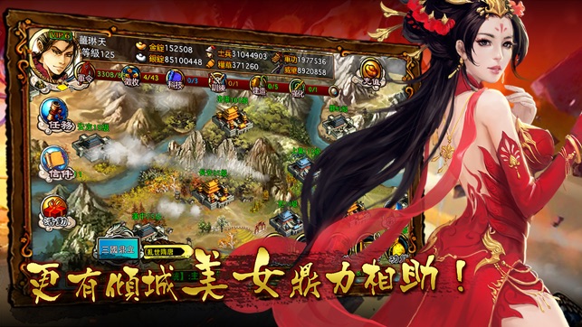 雄霸天地采用三国历史地图,分十三州,四十余座关卡城池,争夺更加激烈,在游戏里面每座城池都是NPC占领。