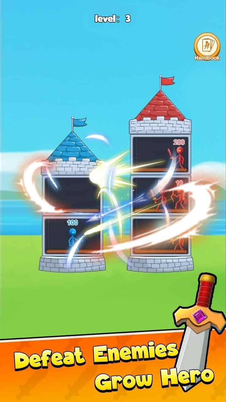3、你应该收集足够的ATK点或与你的盟友合并以升级你的英雄,并确保你比任何敌人和怪物都强大。享受塔楼之战,放松心情。