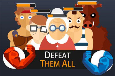挑选喜欢的角色,疯狂点击屏幕,给角色输入力量,击败对手。