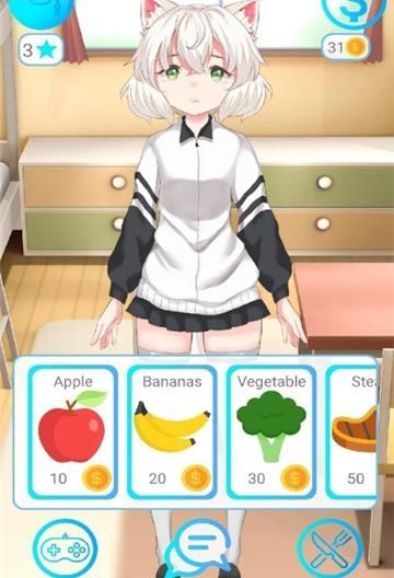 一个角色的画风超级可爱,可以下载体验一下,=可以每天喂女朋友吃东西。