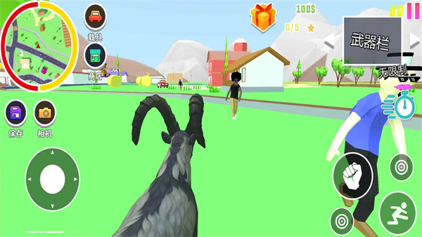 1、游戏中玩家将控制一只山羊进行一系列的破坏活动。山羊可破坏在你视野内一切东西,你可以得到相应的分数。