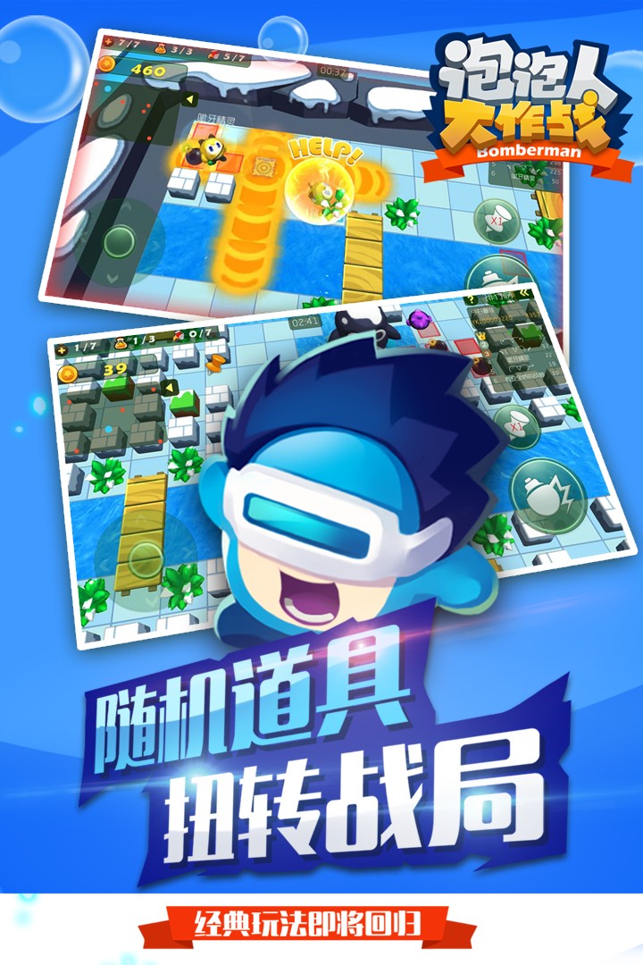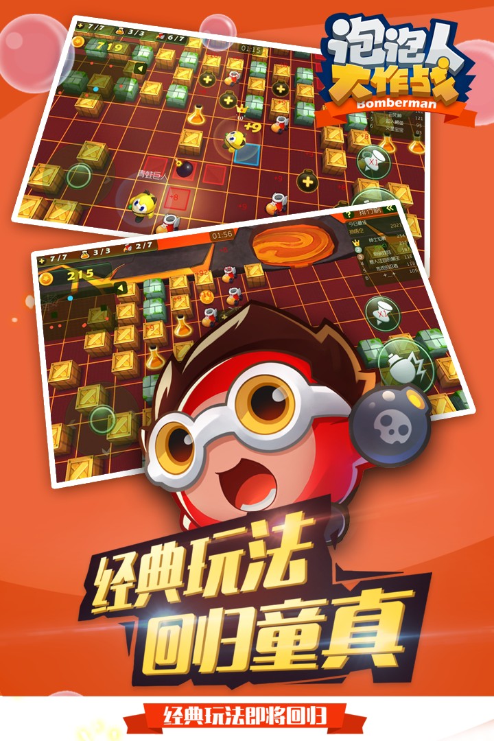 它是Q版休闲竞技类游戏。游戏玩法经典,玩家通过释放泡泡来破坏场景中的箱子、获得不同功能的道具、提升能力并最终消灭敌人。游戏包含了风格ユニーク的多个场景和无尽模式、BOSS模式等丰富的玩法;搞怪多样的怪物大大增加了游戏的挑战性和趣味性。