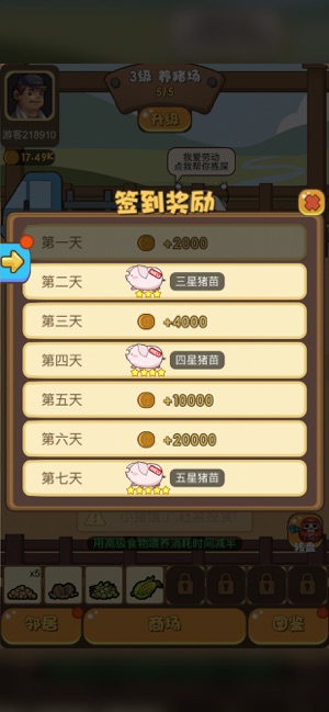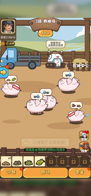2、然后出售以获得报酬,继续运营。游戏最大的乐趣是培育小猪。