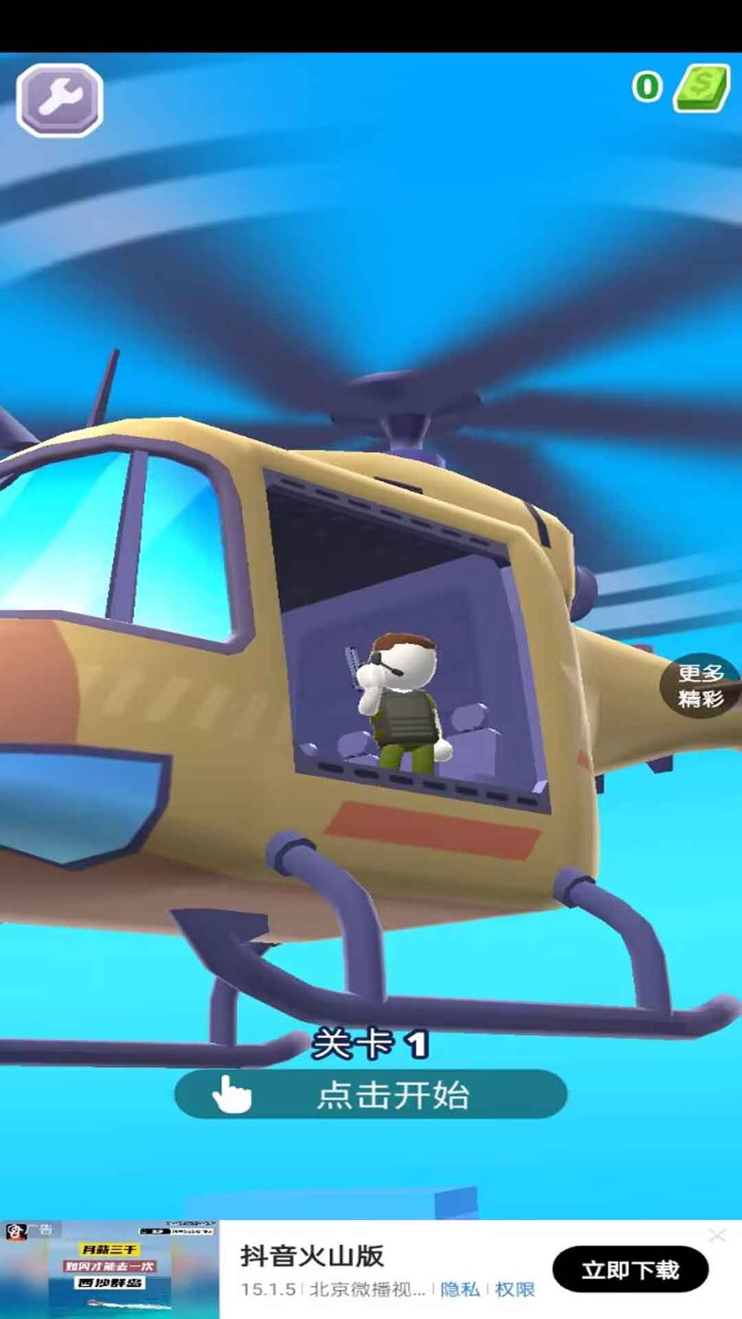 1.休闲闯关游戏。主角身处直升机上,执行营救的任务,在游戏里玩家需要营救一个人。