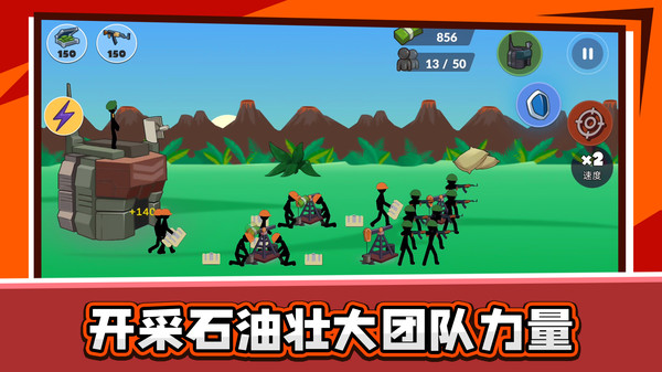1、经典火柴人主题的动作冒险游戏,开启不同的兵种开始冒险,招募大量的队友;