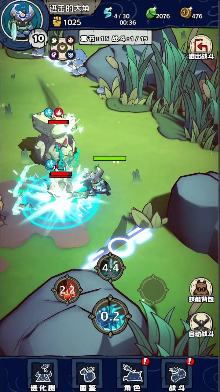 2、主角可以同时配置四个不同的技能,可以尝试不同的连招。
