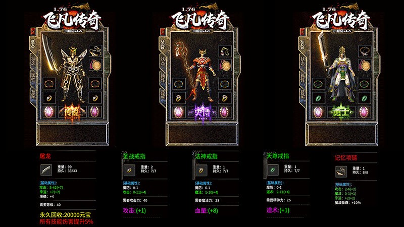 2、初级地图打祖玛装备、赤月装备、新衣服等、回收高额经验、元宝。