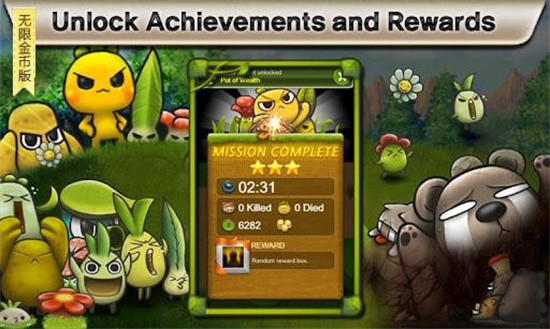 植物保卫战游戏的操作非常的流畅,在游戏里玩家可以安排好技能的释放顺序将AI英雄搞掉;游戏的画面非常可爱,采用了全3D的卡通造型。游戏的总时间可以超过40小时,里面还内置了超过24个成就用以挑战。