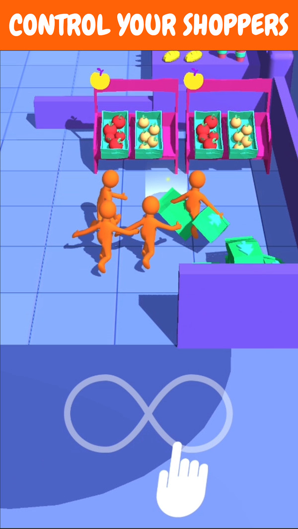 人类疯狂购物是一款全新刺激好玩的多人IO竞技游戏,全新的竞技玩法内容,控制橡皮人军团在商城中不断的抢夺各种生活物资,同时可以集结更多的小人来帮助你抢夺商品,抢夺的越多得分就越高。