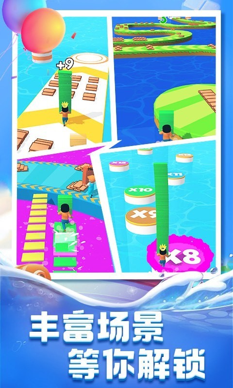 水上大作战手游是非常非常好玩且超级超级耐玩的动作闯关类跑酷题材手游,在游戏里面你将于很多用户同台竞技,在跑道上收集各种木材的同时小心障碍及对手,操作很简单易玩,过程很轻松有趣,可以使玩家随时随地享受手游的乐趣。欢迎体验哦!