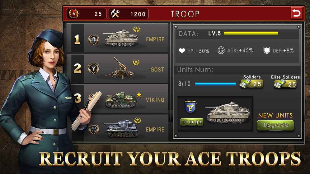 7二战名将世界战争策略手游作为一款战争模拟类型的手游,最强大的军团部队正等待着一位出色的指挥官,而你将会在游戏里面来尝试承担起指挥官的职责,在二战战场上来指挥你的军队,展开各种各样不同的挑战。
