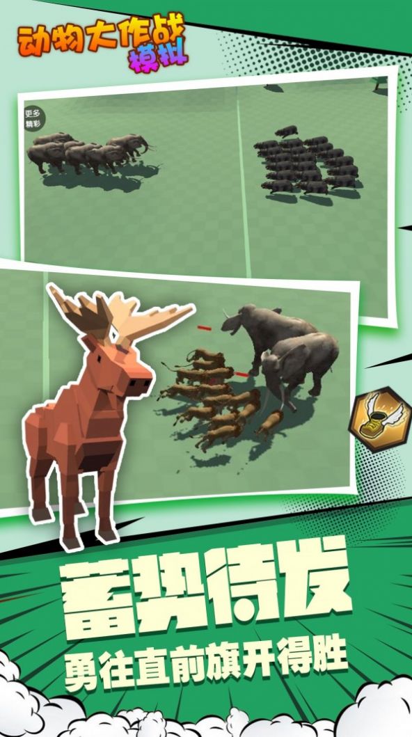 动物大作战模拟手游作为一款精彩有趣的动物战争策略手游,十分精美的画面,超级写实的战场,多重的关卡,等你来挑战,和小伙伴联机通关,丰富不同的动物自由开启,灵活去搭配阵容,排兵布阵,发挥出实力,猛兽对冲,击败各个对手,百战百胜。