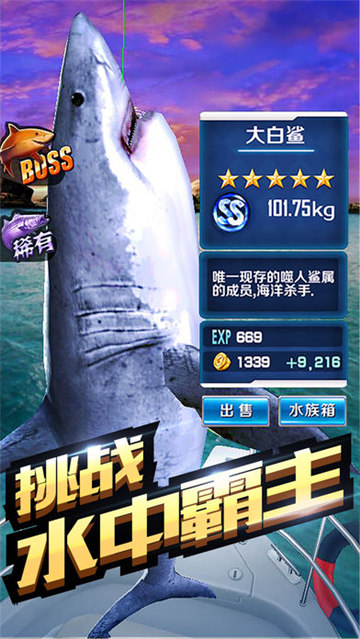 1、一款模拟捕鱼游戏,模拟真实著名景点以及垂钓胜地,美景尽收眼底;2、操作力求简洁,只需一指一键,5连击,垂钓、技能肆意滑动,体验真实的钓鱼感觉;3、水族馆系统。养的大,卖的多,留下稀有观赏也不错!各种钓鱼装备应有尽有;4、游戏中数以百计的鱼类供你垂钓,真实钓鱼体验中,你能周游世界海滨圣地与知名钓场。