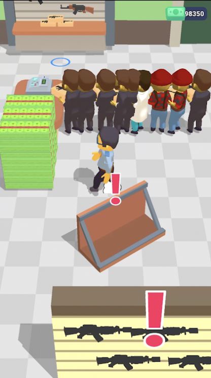 3、你想要让大家排好队,然后卖给他们更多的武器,以及你想要不断的升级枪械库。