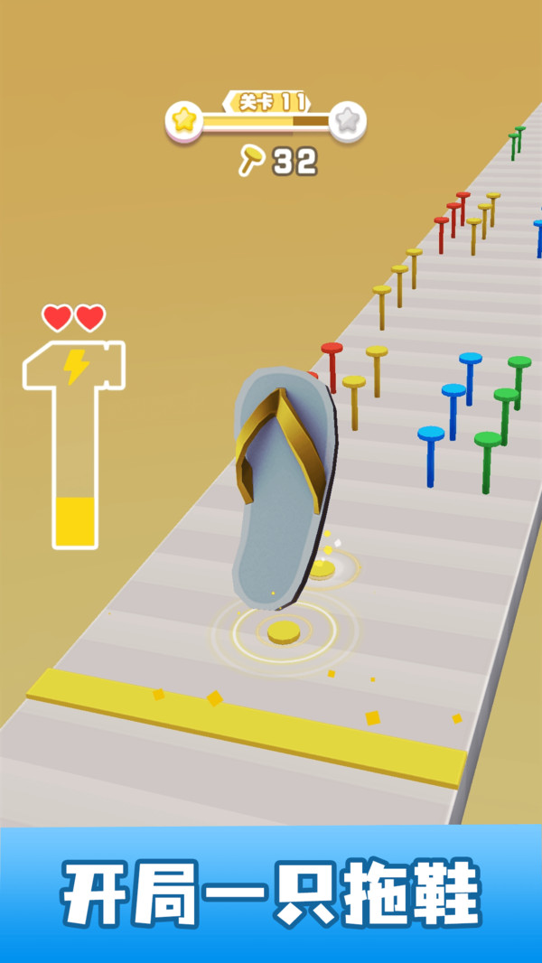 在里面你可以不断依照钉子的途径来向前走,游戏十分的简易。