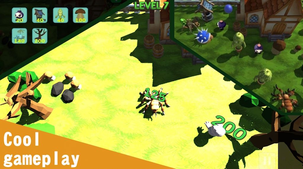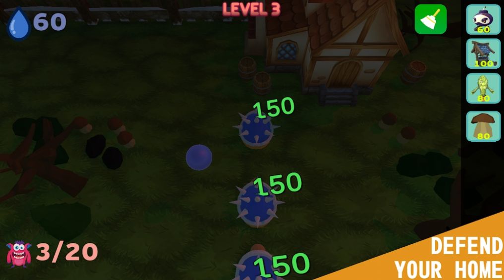 在这个花村塔防塔防游戏中,在游戏里玩家作为一个村庄的村长,面对着即将侵入家园的怪物,需要冷静思考,并制定出一个正确的计划,在游戏里玩家需要在村庄前面放置一些炮塔和道具来阻挡怪物的前进速度,但随着游戏的发展,怪物会越来越多,所以用户需要熟悉地图的每个位置精心布置。
