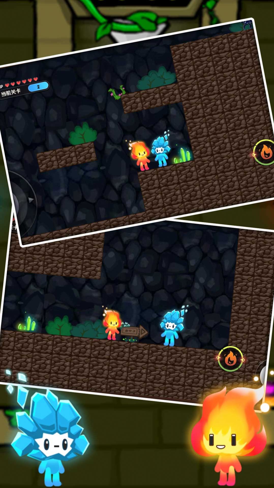 3、控制冰火小人去冒险,灵活的进行关卡的挑战任务!