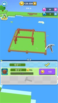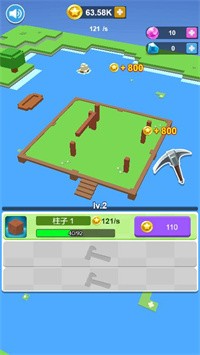 你需要点击对应的方块来建造房子,通过获得金币来购买不同数量的方块,一点一点的搭建来完成任务,解锁更多方块来搭建更多的区域,搭建更多的房屋来体验不一样的乐趣。