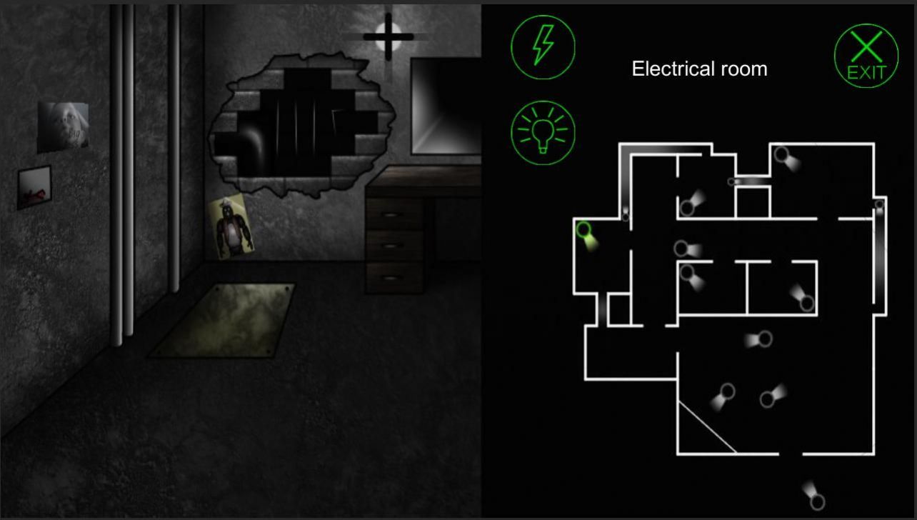 4、白色按钮是控制三扇门的钥匙。如果蓝猫正在靠近,你想要开关监控室的门,确保度过第一个夜晚。