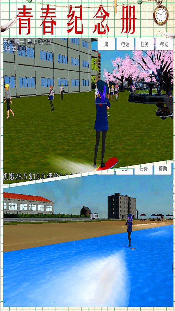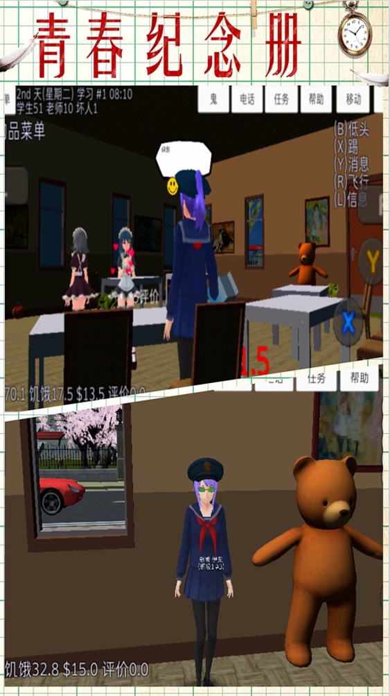 1、高品质的3D场景和角色造型,模拟日常校园内外的生活。