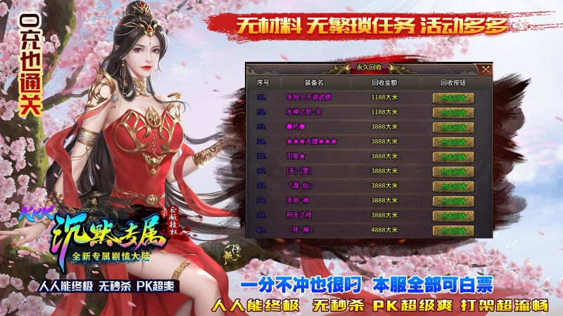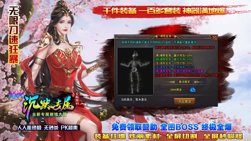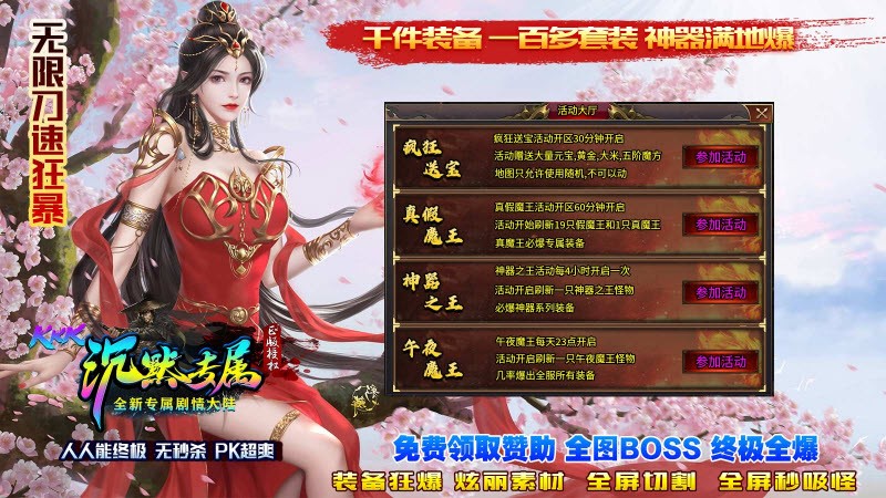 三千件专属装备、超多BUFF、超多地图、超级攻速、所有货币均可爆或回收、散人靠时间一样可以吊打土豪。