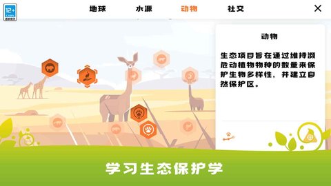 3、玩耍并了解我们星球上不同地区生态的真实特征。跟踪每个区域的生态情况。在游戏中,你将熟悉区域环境问题及其原因。