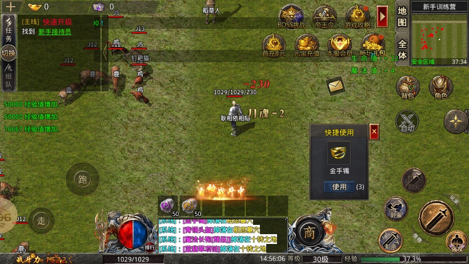 2、挂机打怪是升级的最快方式,而且能用自动战斗来完成。