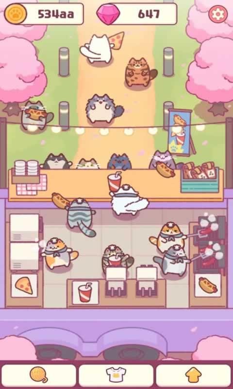 2. 出了名的容易的放置型游戏,玩2次吧,喵咪们自己经营餐厅,真了不起!