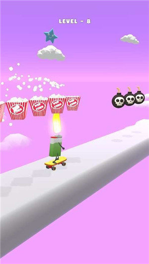 打火机滑板是超好玩的一款闯关游戏,这里的奖励很丰富哦,玩家可以在这里获取很多的道具,轻松挑战没有任何的约束哦!玩家可以自由闯关,这里的体验感非常的魔性,一定要小心不要点着炸弹哦,不然就会失败,喜欢的话快来下载打火机滑板试试吧!