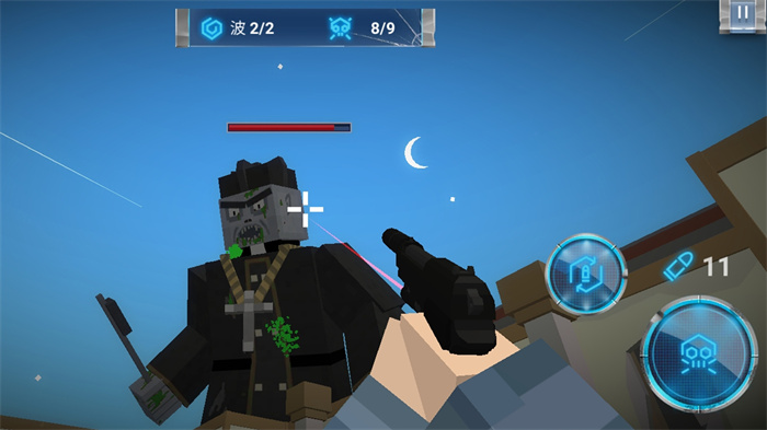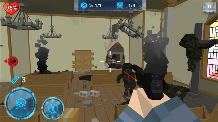 3、控制自己的角色进行对战,拿起自己的武器打败更多的僵尸。