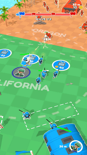 使用您的军事策略征服整个国家,如果您不使用该策略,则无法赢得战争。首先,您必须从敌人的波浪中保卫您的基地,然后您应该专注于攻击敌人的基地,考验用户的反应能力。