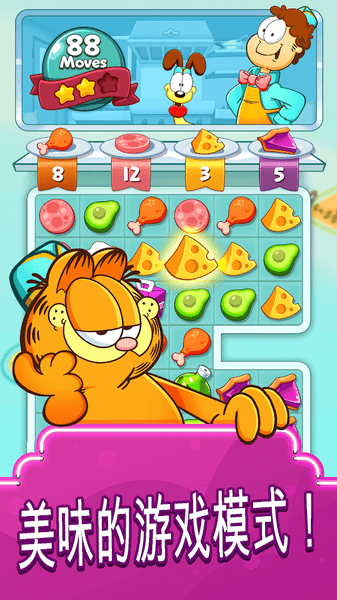 加菲猫快餐车是一款休闲游戏对于喜欢相关加菲猫游戏题材的玩家朋友们来说,你们在路途中需要通过消除食材来完成订单,超多旅游景点关卡设计让你每次都能有着不一样的感受,然后才能把餐车开往下一个地方。