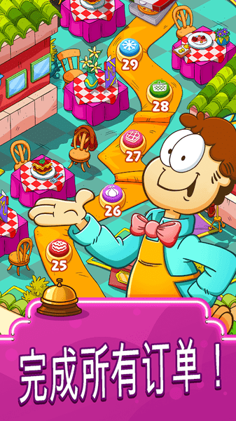趣味的三消玩法,制作出美味的食物来招待世界各地的游客。