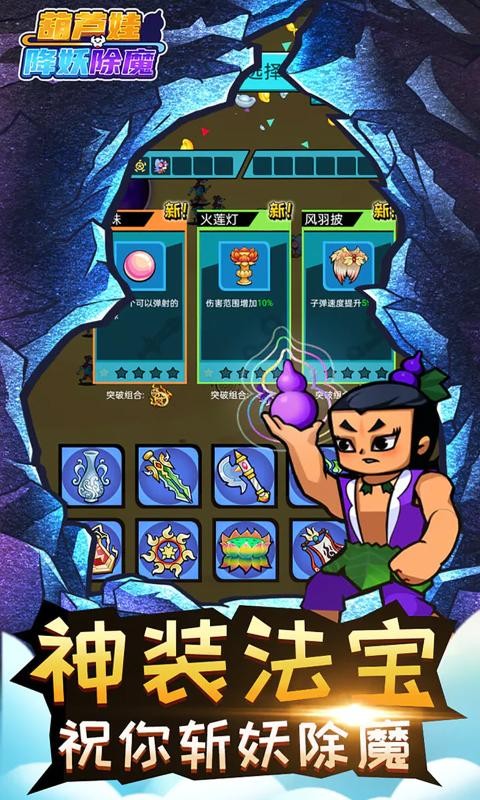 3、各钟强力法宝等待你来解锁,邪恶妖精四处破坏,快来和葫芦兄弟们并肩作战!