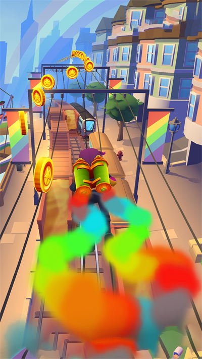 1、地铁跑酷旧金山版开启更多炫酷服饰,自由穿梭于城市街道,享受无限冒险。