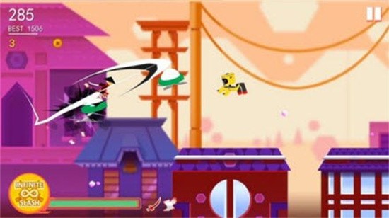 2、这是一款极具挑战性的无尽跑酷游戏,作为新日本最后一个武士,协助他在奔跑之中砍杀敌人吧!